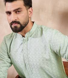 | Product Name | Men Green Silk Blend Geometric Embroidered Straight Kurta With Trouser | |