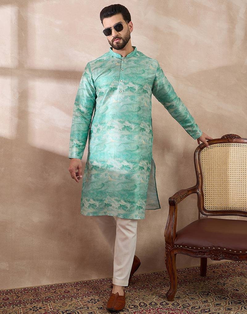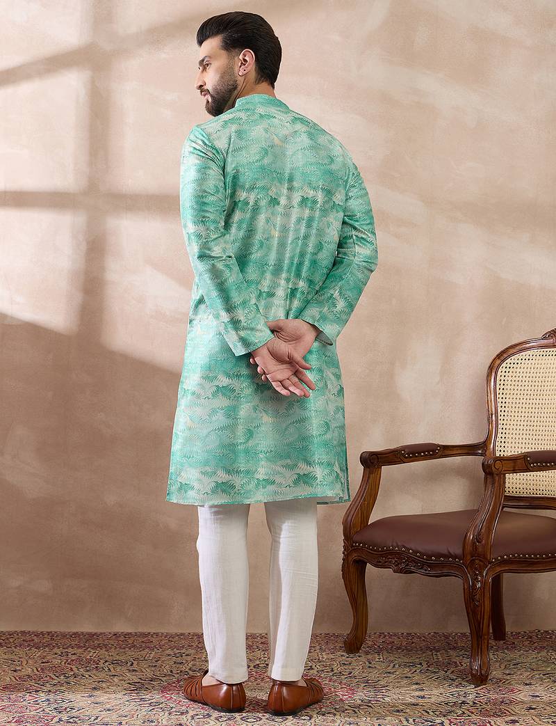 | Product Name | Men Green Silk Blend Printed Mandarin Collar Straight Kurta With Trouser | |