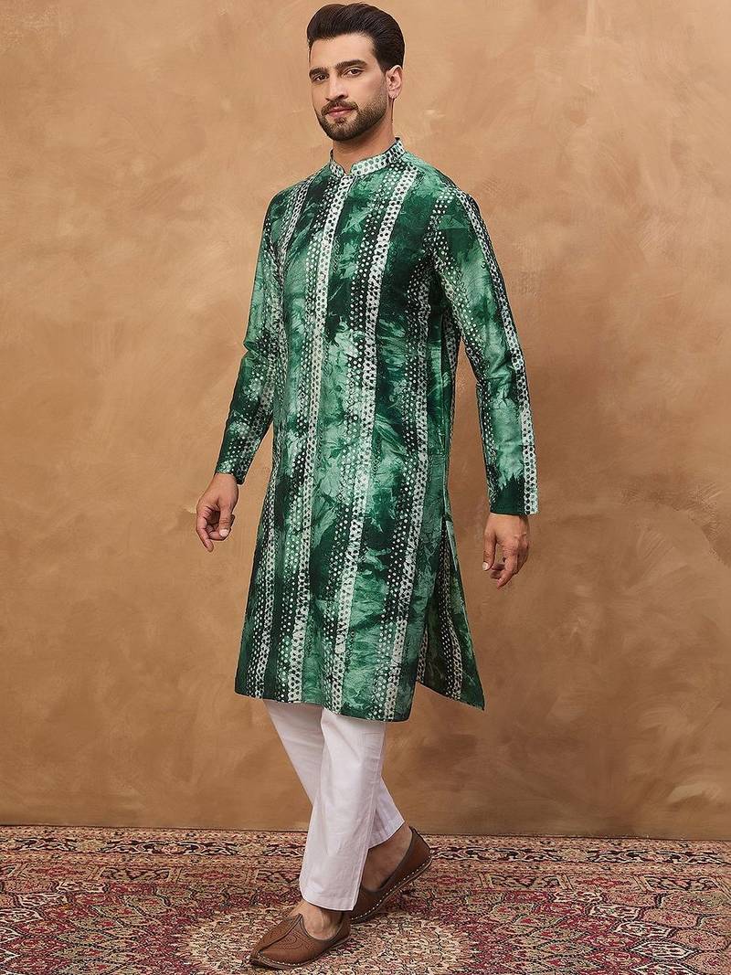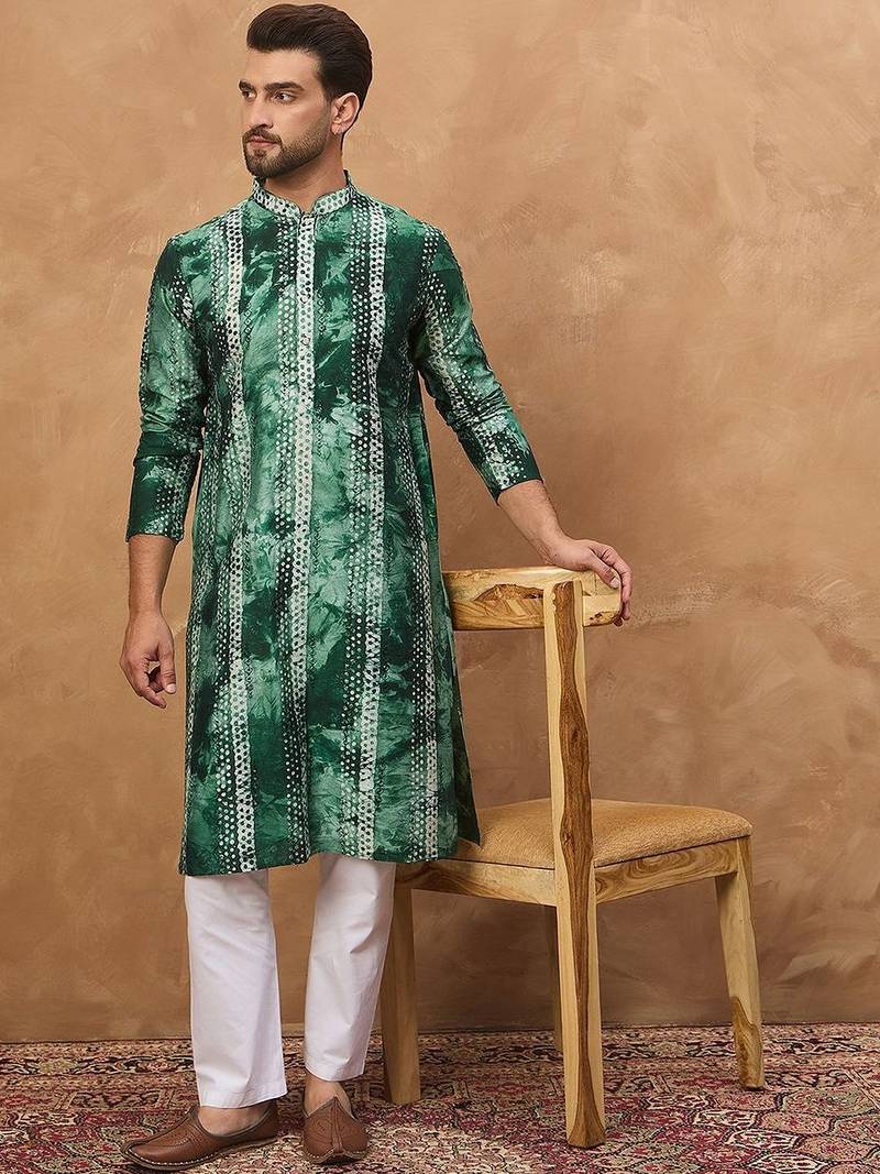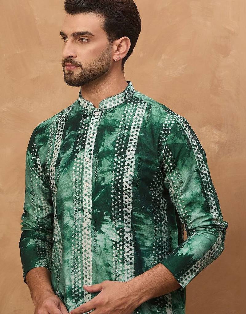 | Product Name | Men Green Silk Blend Shibori Embroidered Straight Kurta With Pant Set | |