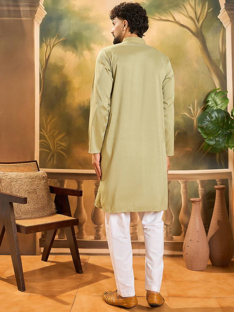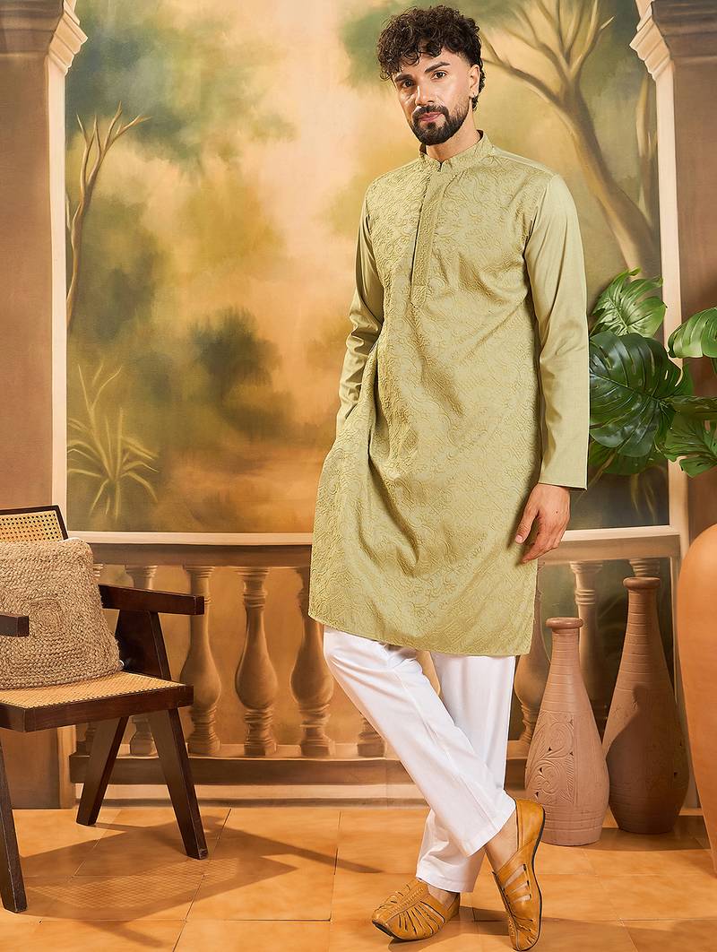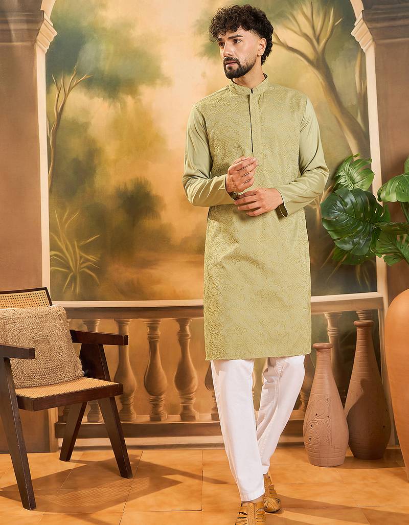 | Product Name | Men Green Silk Blend Solid Embroidered Straight Kurta | |
