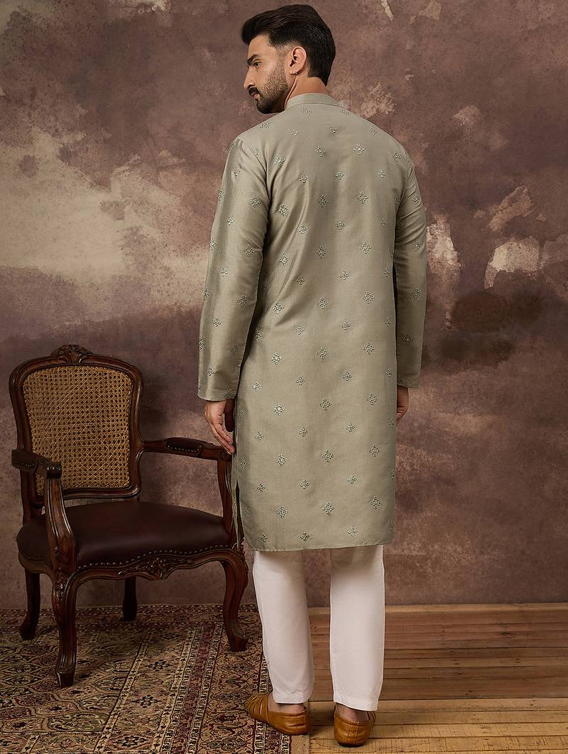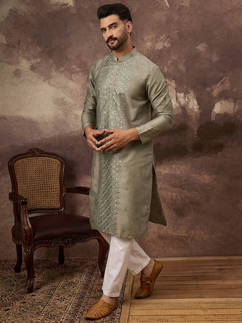 | Product Name | Men Green Silk Blend Solid Embroidered Straight Kurta | |