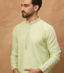 | Product Name | Men Green Silk Blend Solid Embroidered Straight Kurta | |