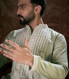 | Product Name | Men Green Silk Blend Solid Embroidered Straight Kurta | |