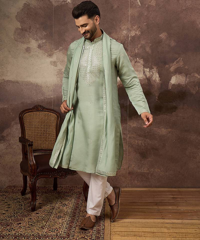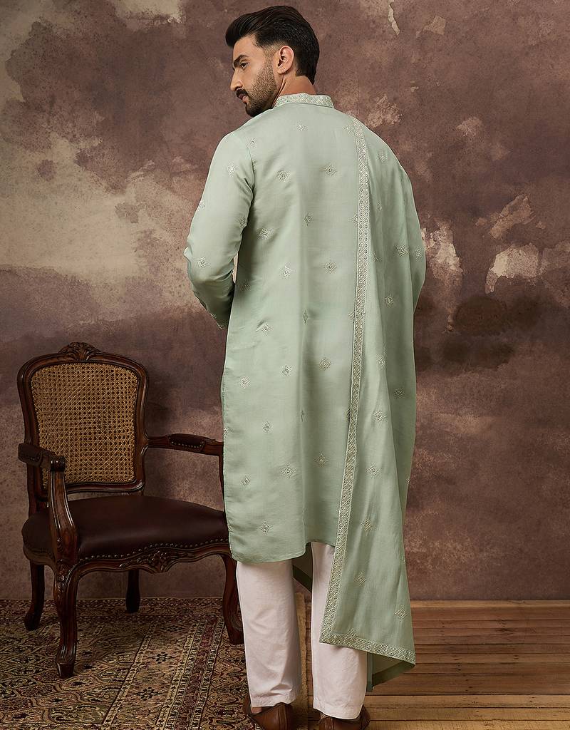 | Product Name | Men Green Silk Blend Solid Embroidered Straight Kurta With Dupatta | |