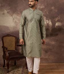 | Product Name | Men Green Silk Blend Solid Embroidered Straight Kurta With Trouser | |