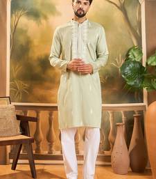 | Product Name | Men Green Silk Blend Solid Embroidered Straight Kurta With Trouser | |