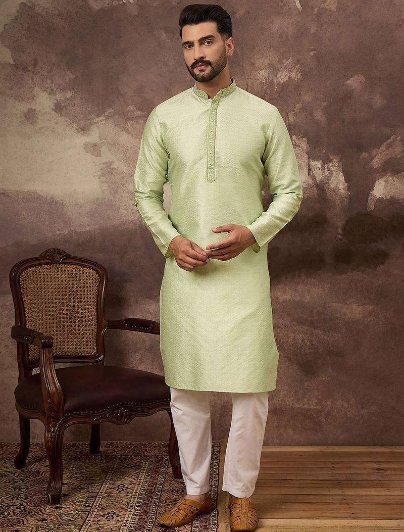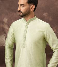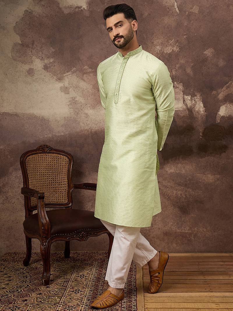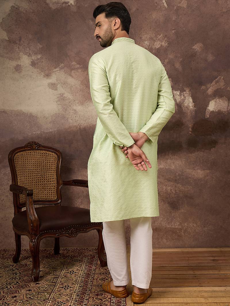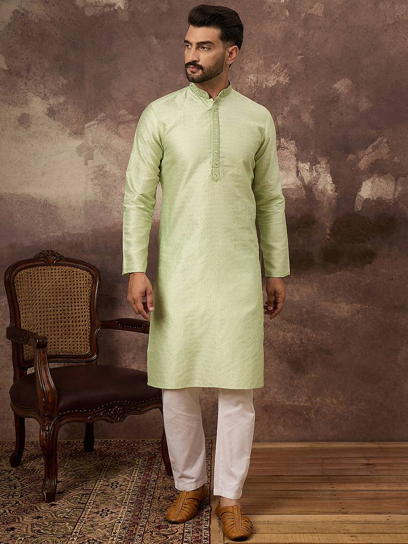 | Product Name | Men Green Silk Blend Solid Woven Design Straight Kurta | |