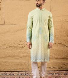 Men green viscose rayon bandhani embroidered straight kurta with trouser
