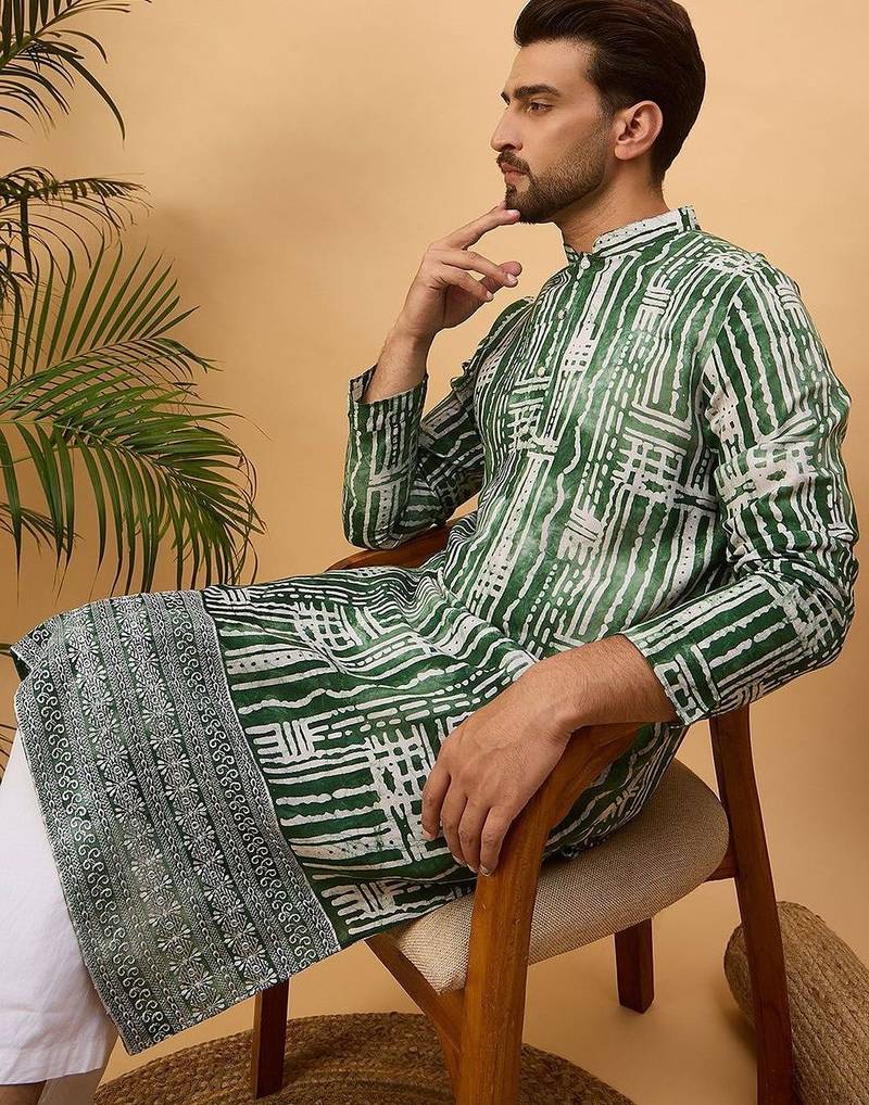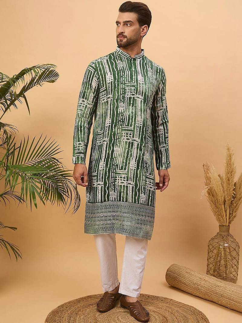 | Product Name | Men Green Viscose Rayon Batik Embroidered Straight Kurta With Pant Set | |