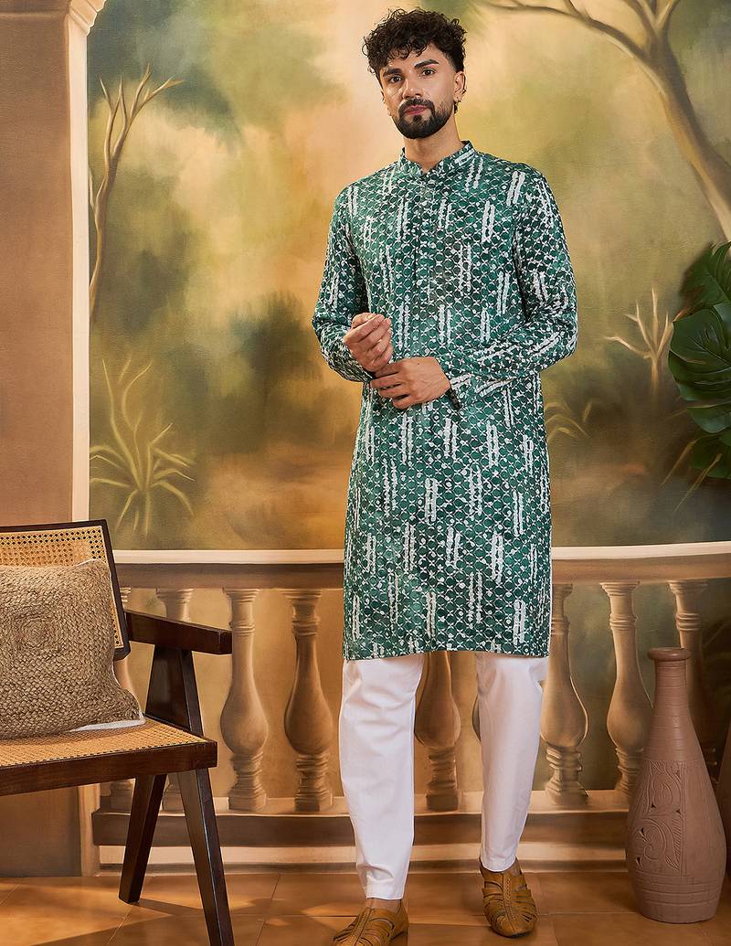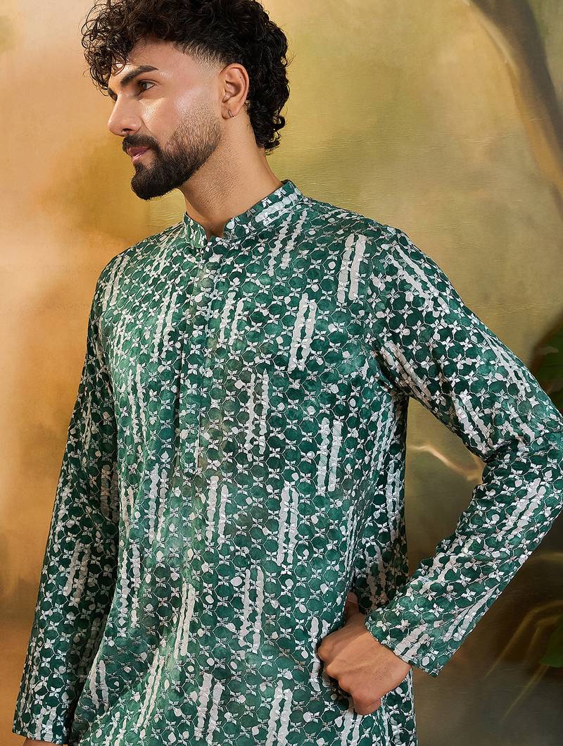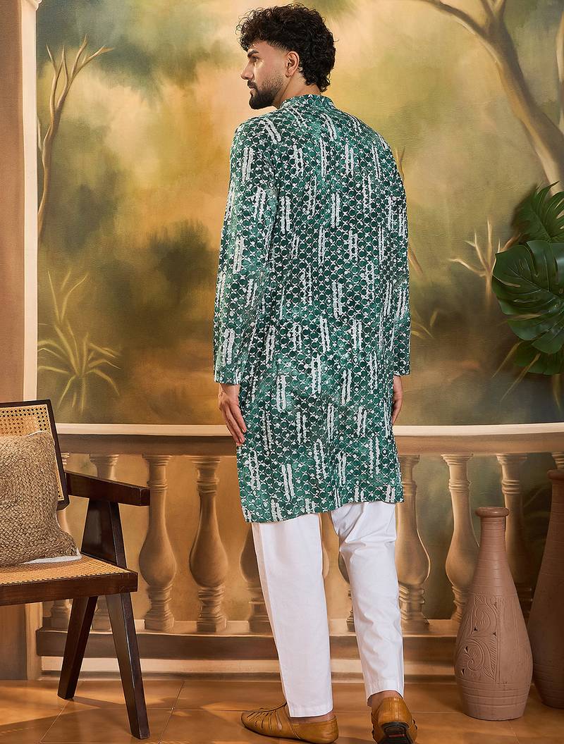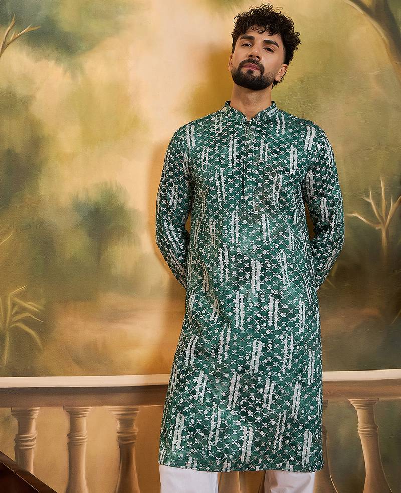 | Product Name | Men Green Viscose Rayon Shibori Embroidered Straight Kurta | |
