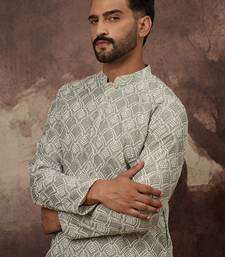 Men green viscose rayon solid embroidered straight kurta