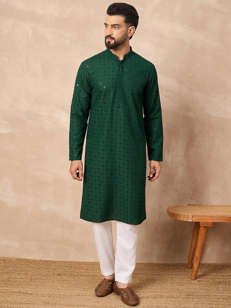 | Product Name | Men Green Viscose Rayon Solid Embroidered Straight Kurta | |