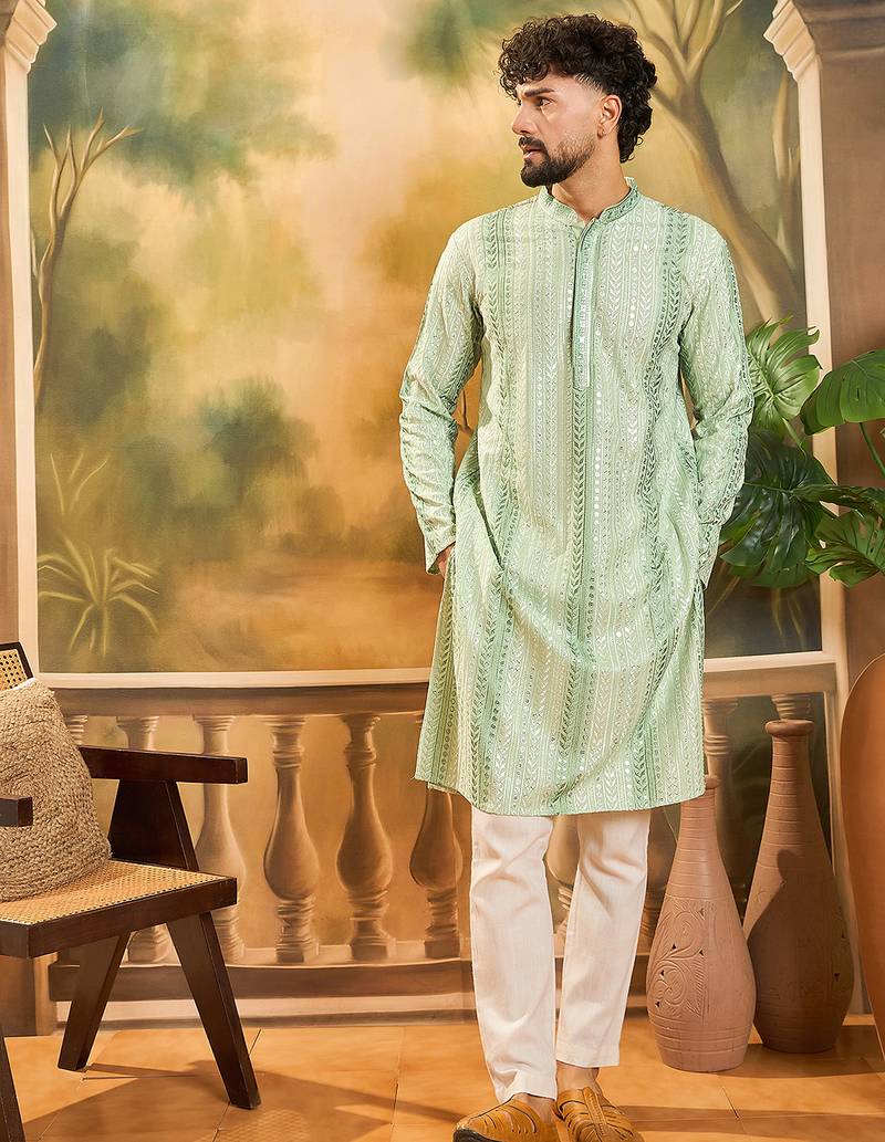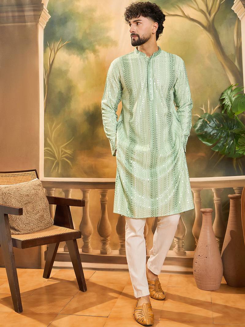 | Product Name | Men Green Viscose Rayon Solid Embroidered Straight Kurta | |