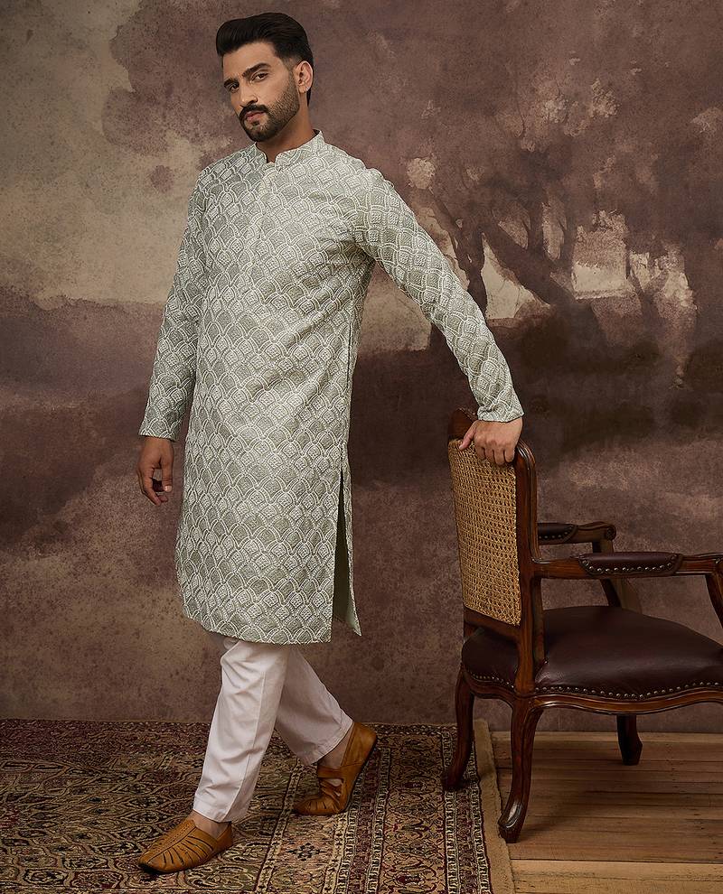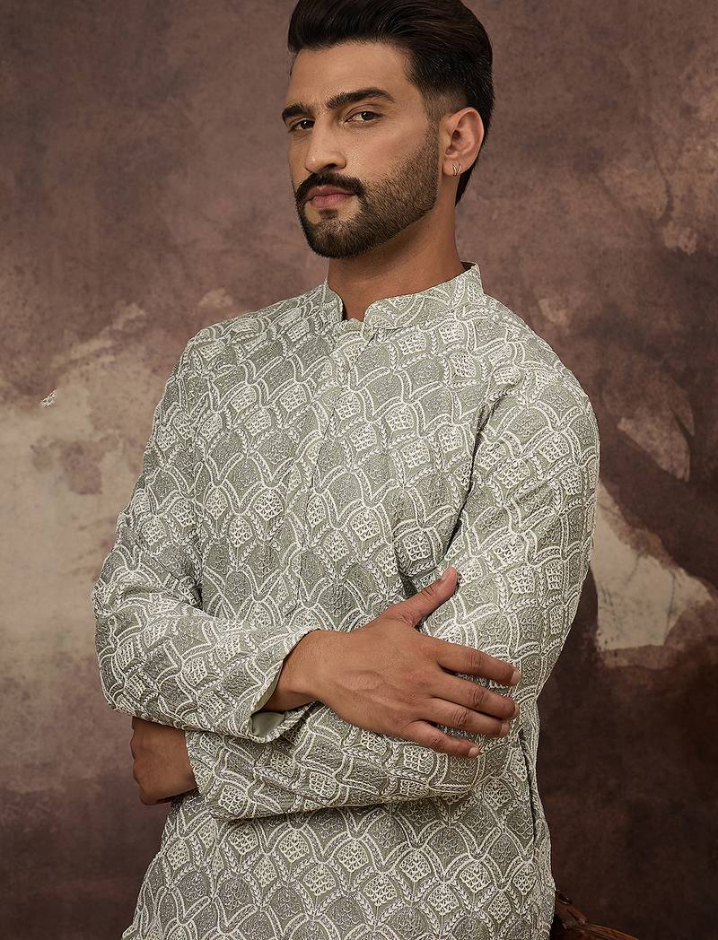 | Product Name | Men Green Viscose Rayon Solid Embroidered Straight Kurta With Trouser | |
