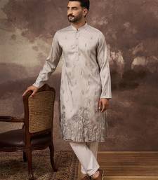 | Product Name | Men Grey Silk Blend Solid Embroidered Straight Kurta | |