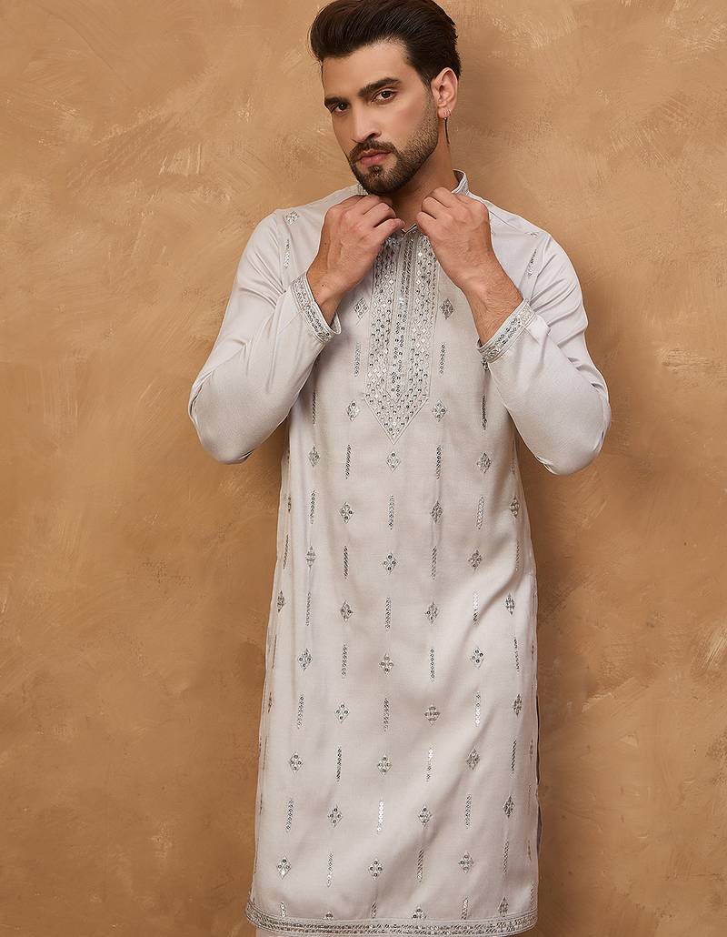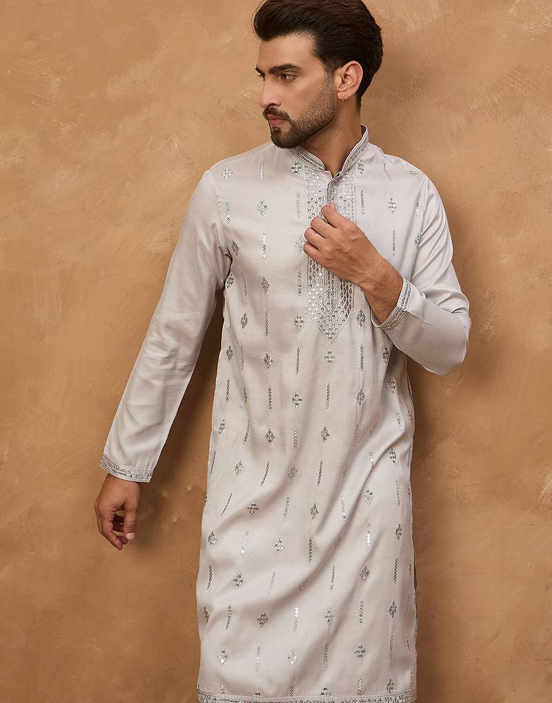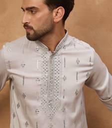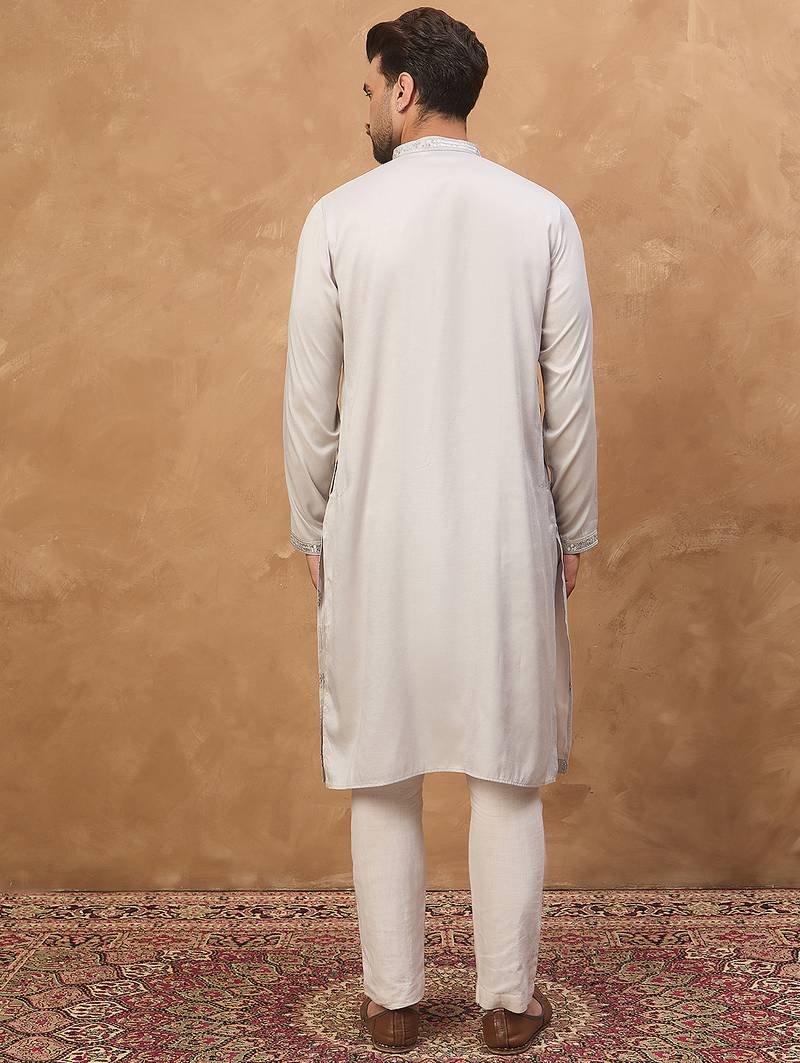 | Product Name | Men Grey Silk Blend Solid Embroidered Straight Kurta | |