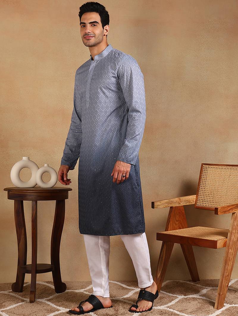 | Product Name | Men Grey Viscose Rayon Ethnic Motifs Embroidered Straight Kurta | |