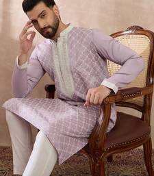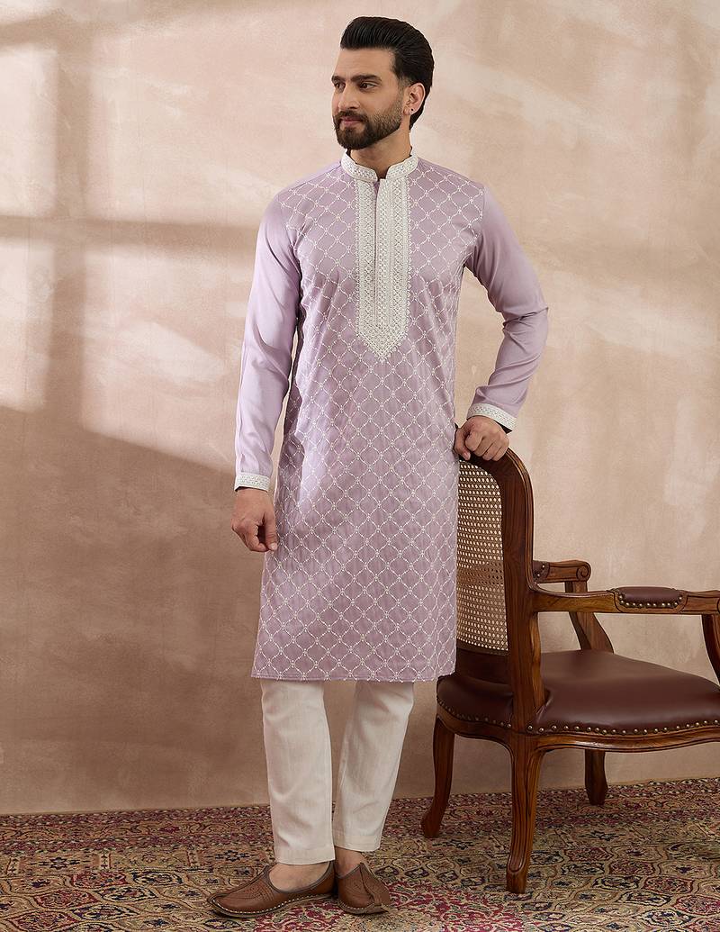 | Product Name | Men Lavender Silk Blend Embroidered Mandarin Collar Straight Kurta | |