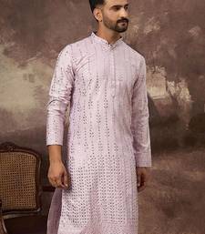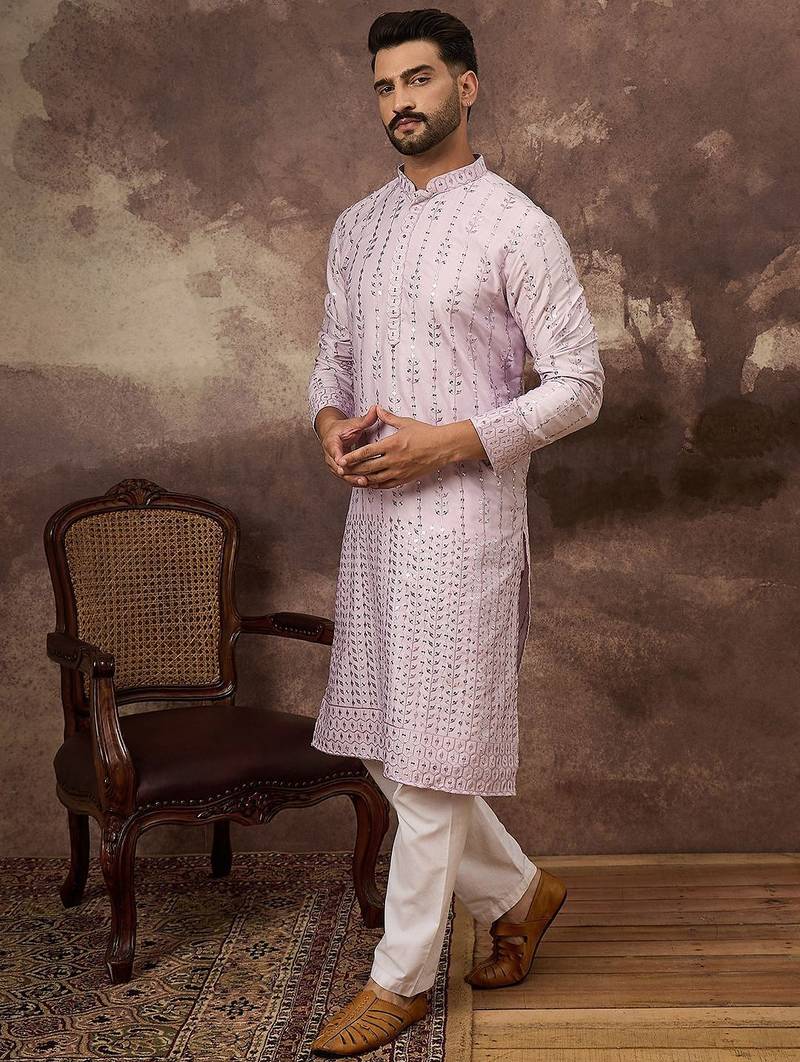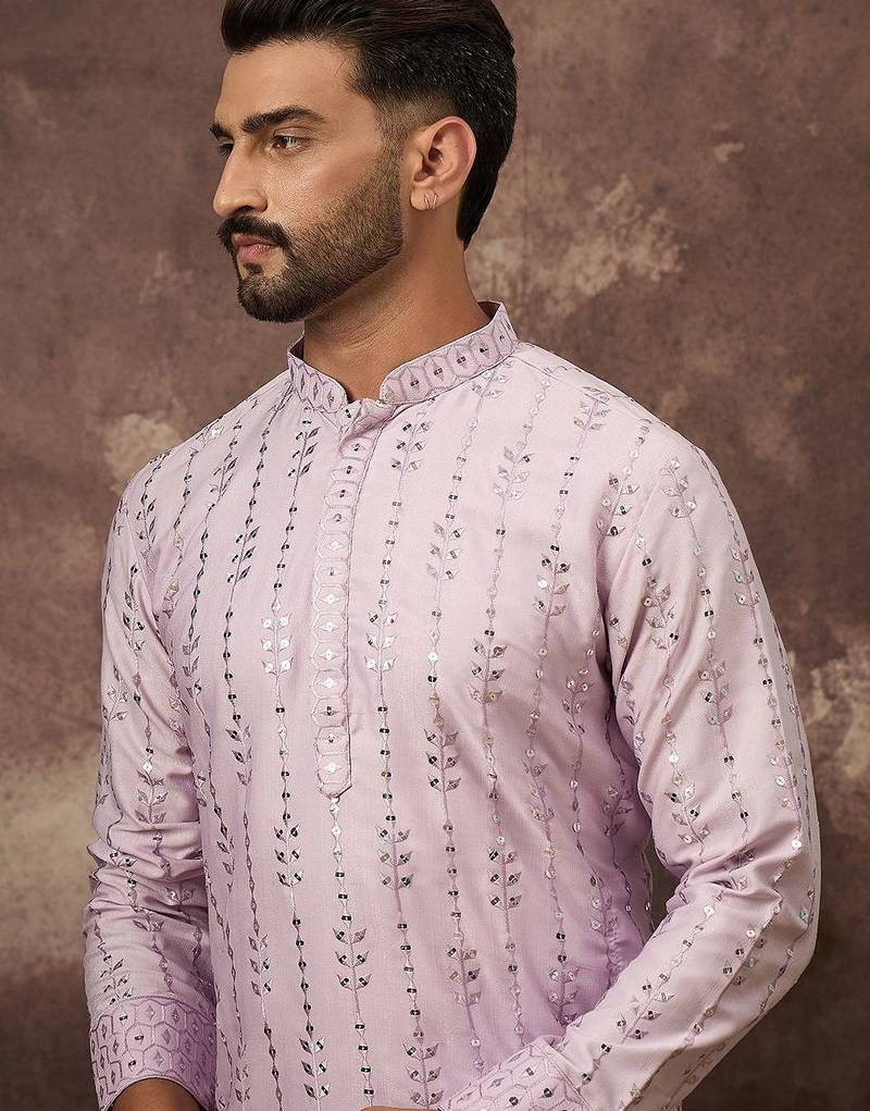 | Product Name | Men Lavender Silk Blend Solid Embroidered Straight Kurta With Pant Set | |