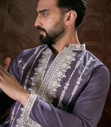 | Product Name | Men Lavender Silk Blend Solid Embroidered Straight Kurta With Trouser | |