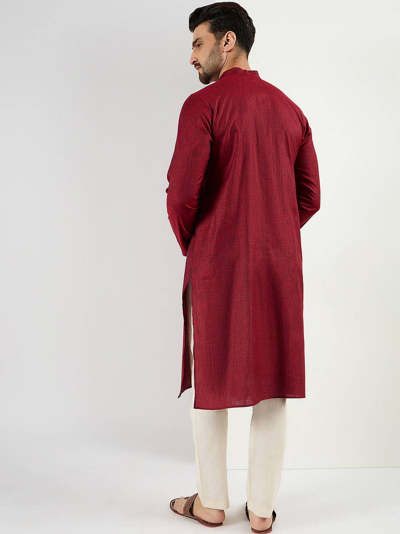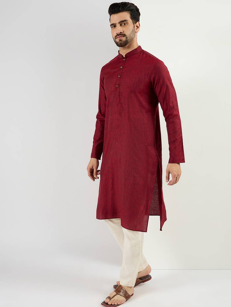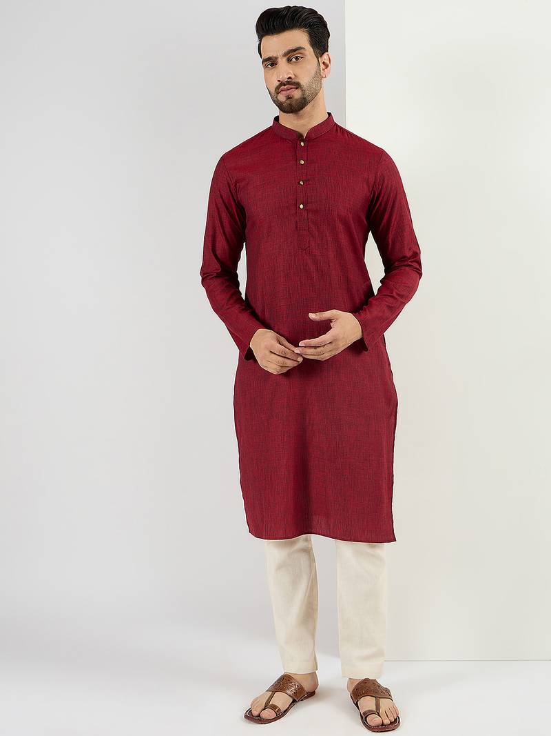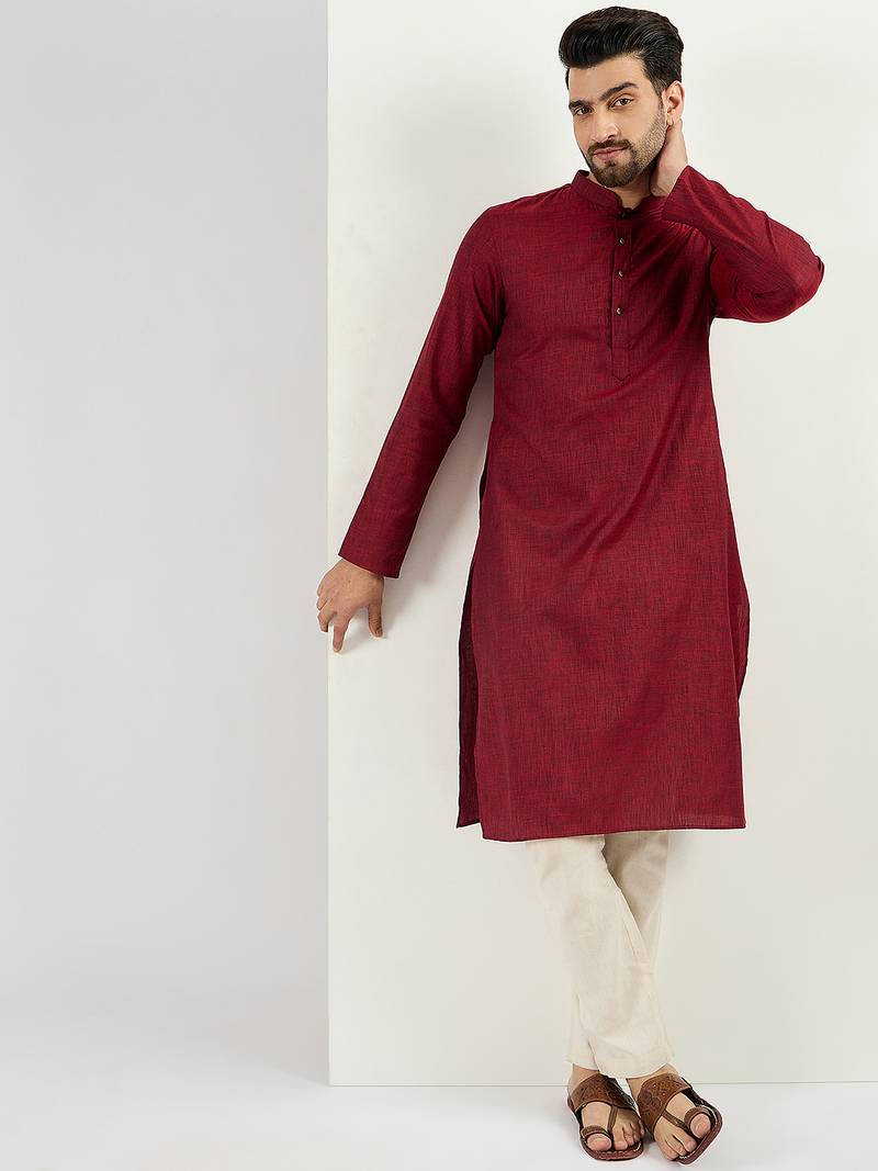 | Product Name | Men Maroon Pure Cotton Solid Woven Design Straight Kurta With Trousers | |