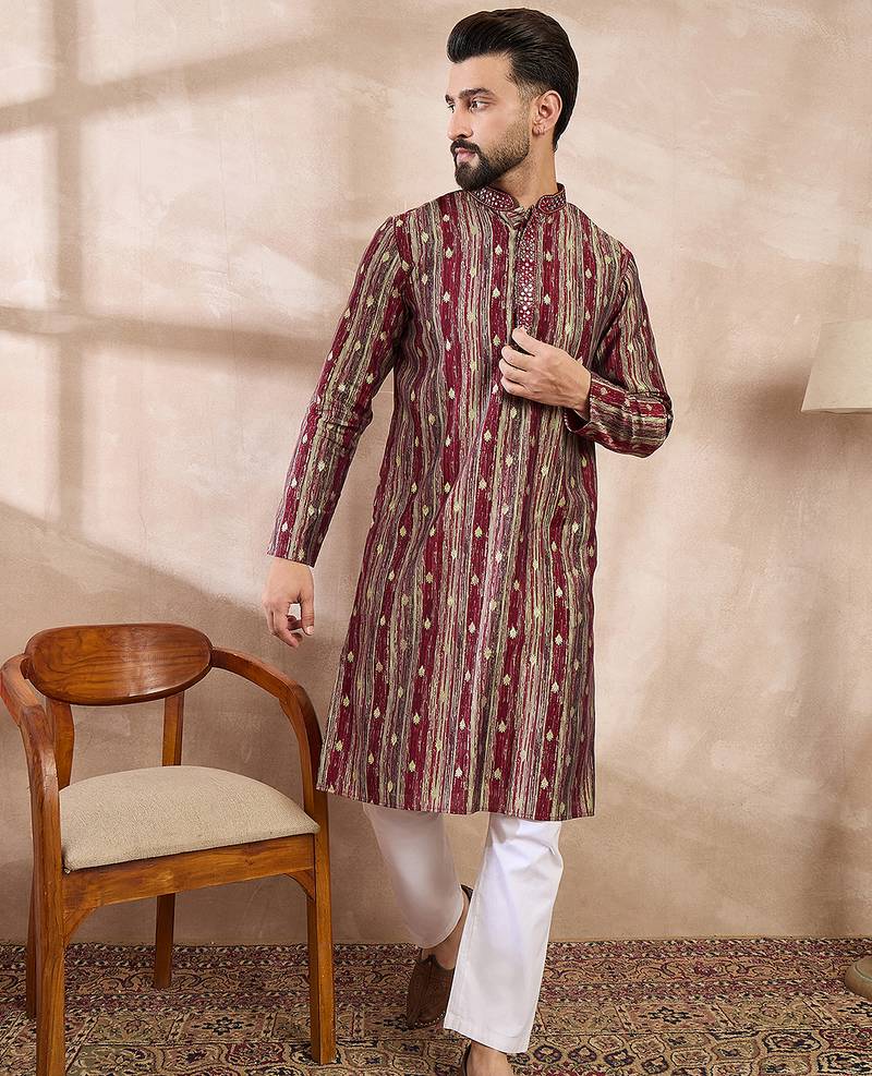 | Product Name | Men Maroon Silk Blend Abstract Printed Straight Kurta | |
