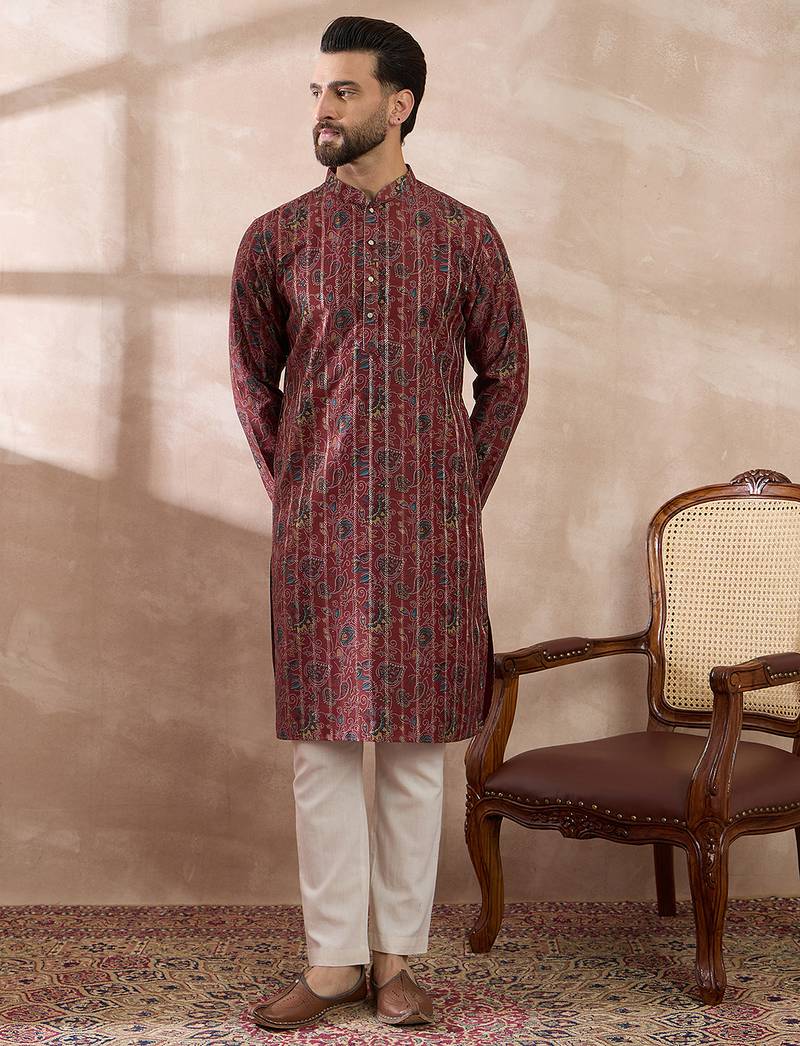 | Product Name | Men Maroon Silk Blend Printed Mandarin Collar Straight Kurta | |
