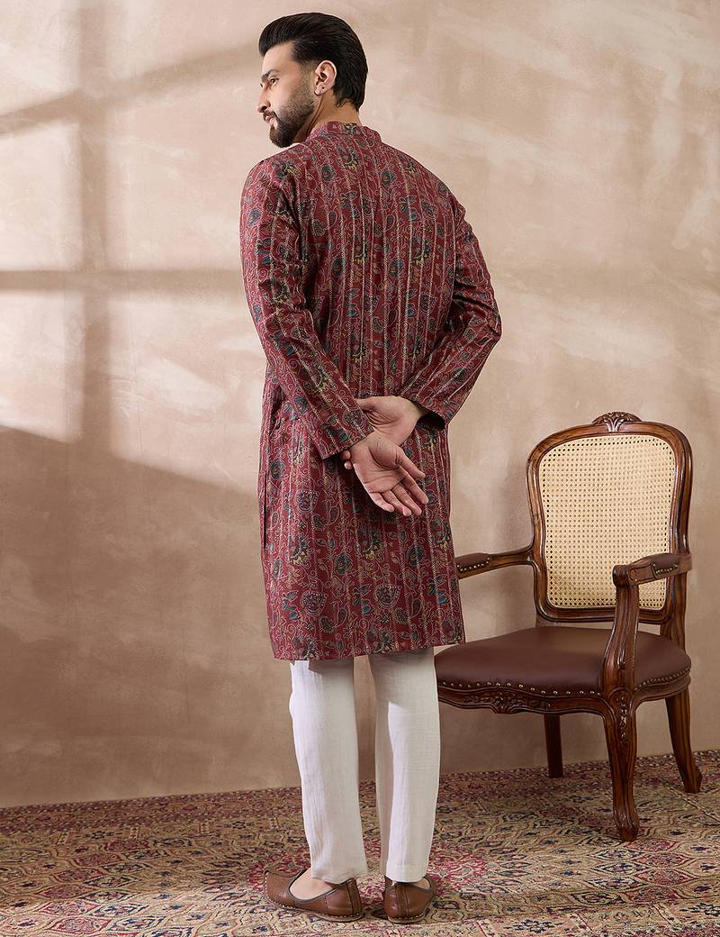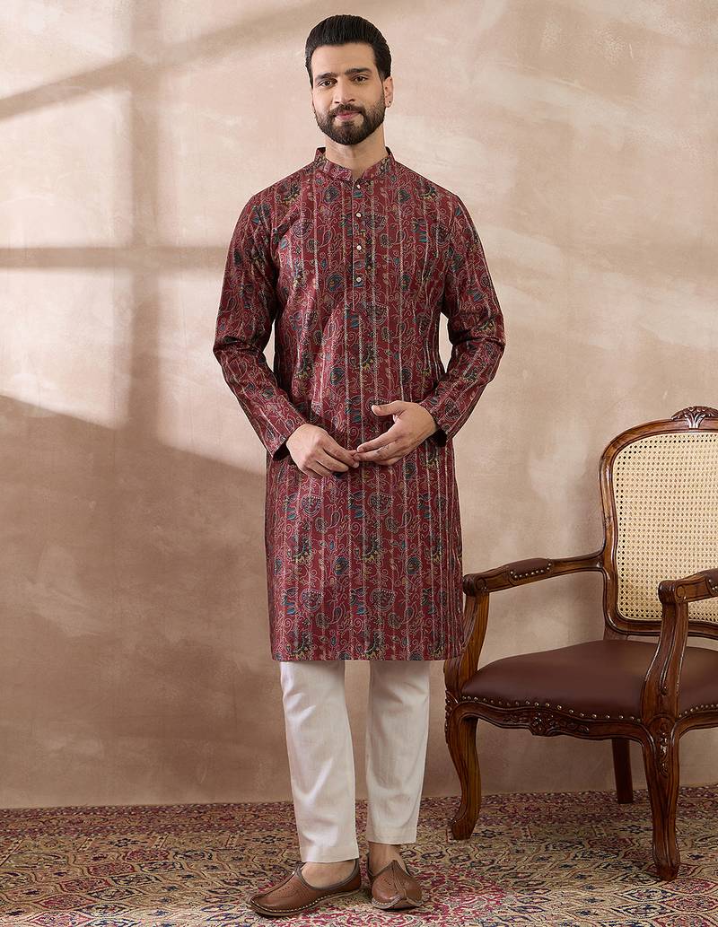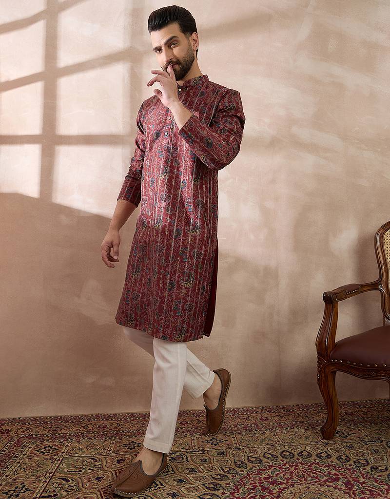| Product Name | Men Maroon Silk Blend Printed Mandarin Collar Straight Kurta With Trouser | |