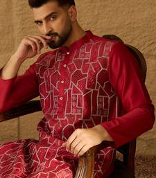 | Product Name | Men Maroon Silk Blend Solid Embroidered Straight Kurta | |