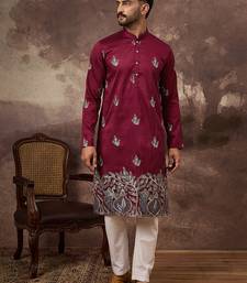 | Product Name | Men Maroon Silk Blend Solid Embroidered Straight Kurta With Trouser | |
