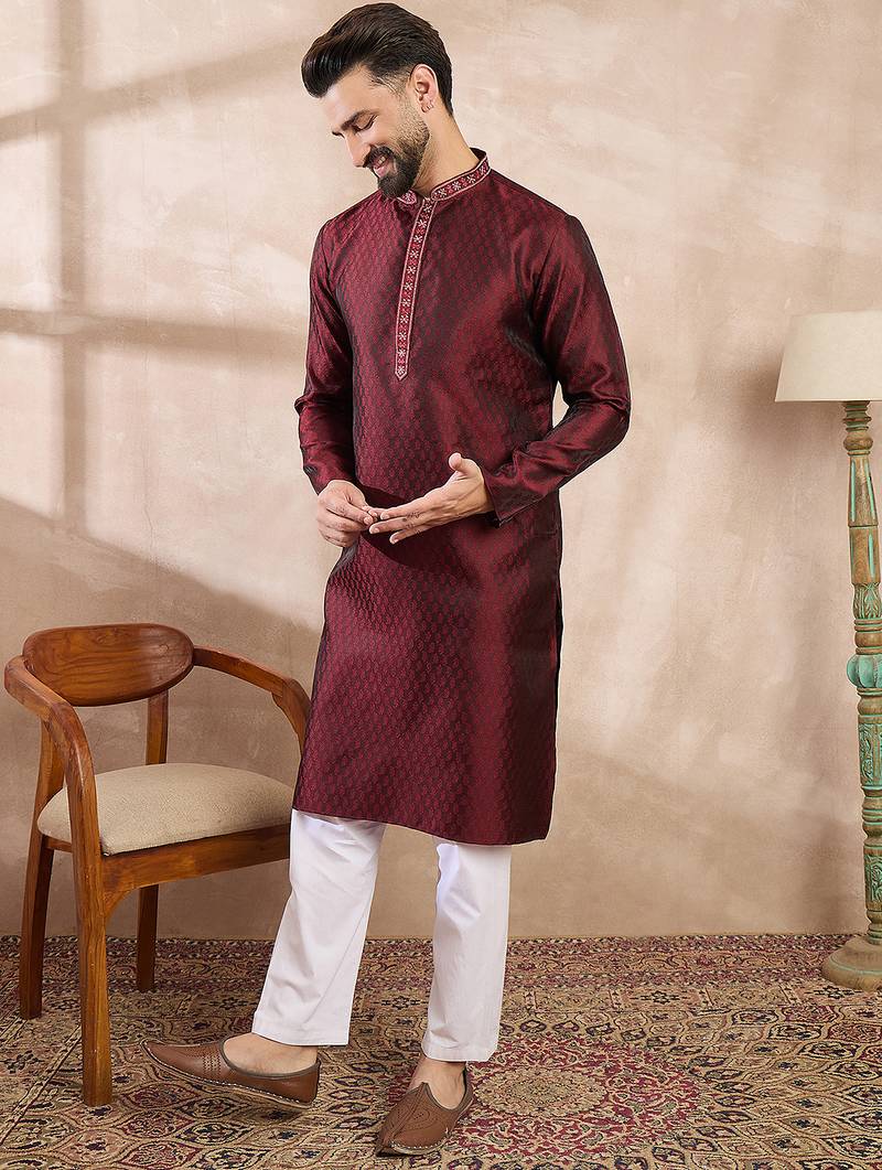 | Product Name | Men Maroon Silk Blend Solid Woven Design Straight Kurta | |