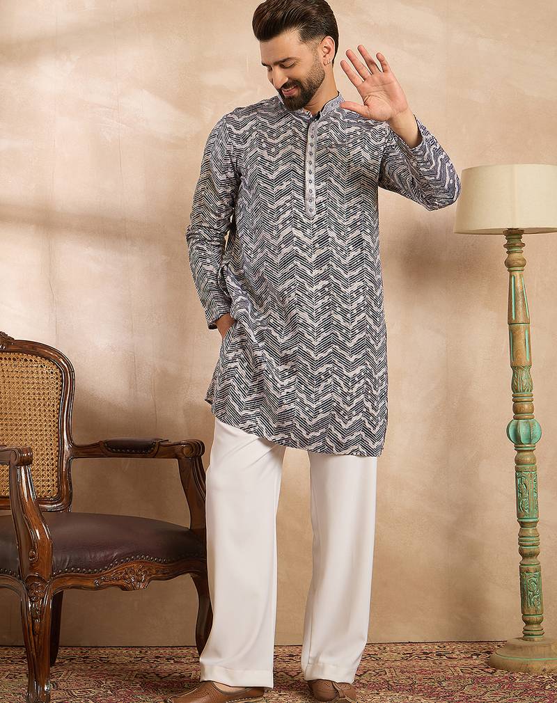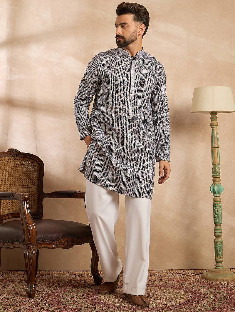 | Product Name | Men Navy Blue Polyester Batik Embroidered Straight Kurta Sets | |