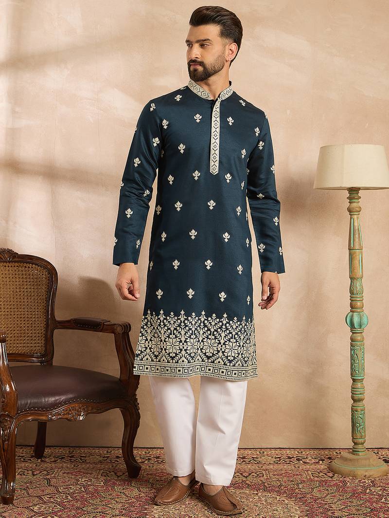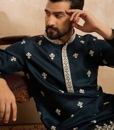 | Product Name | Men Navy Blue Polyester Solid Embroidered Straight Kurta | |