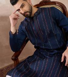 | Product Name | Men Navy Blue Silk Blend Embroidered Mandarin Collar Straight Kurta With Trouser | |