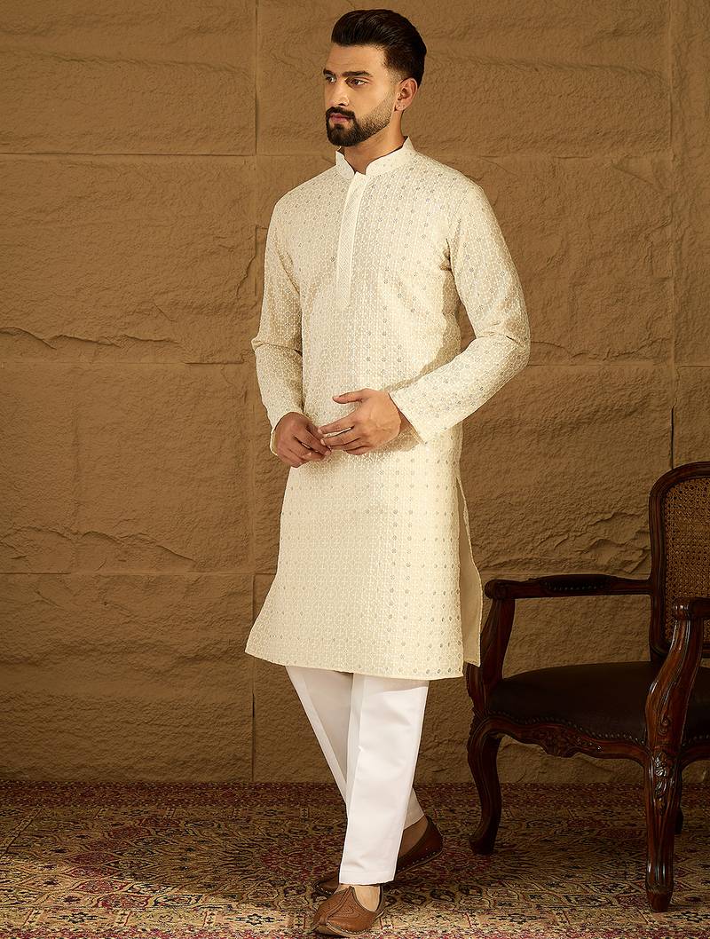 | Product Name | Men Off White Cotton Solid Printed Straight Kurta | |