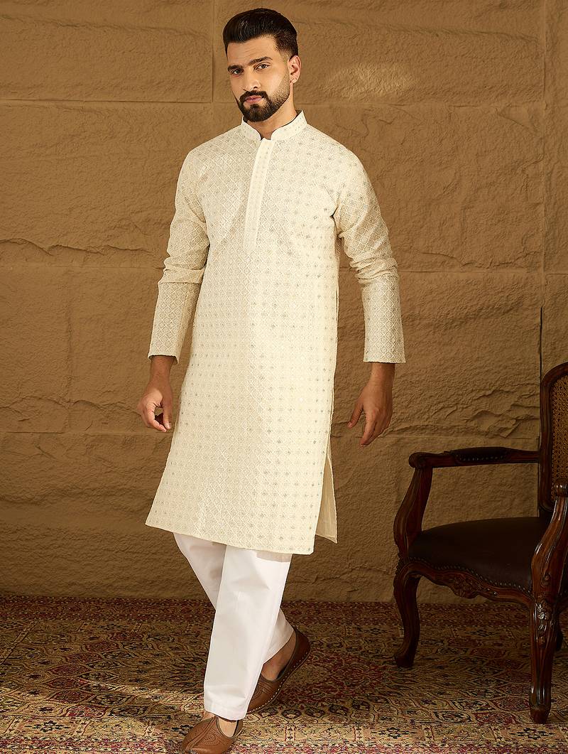 | Product Name | Men Off White Cotton Solid Printed Straight Kurta With Trouser | |