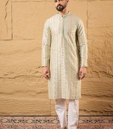 | Product Name | Men Off White Silk Blend Solid Embroidered Straight Kurta With Trouser | |