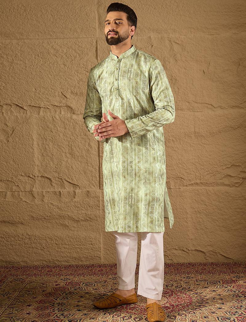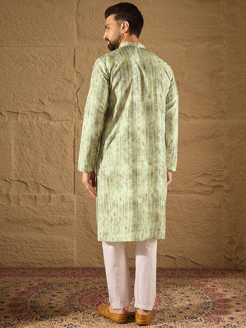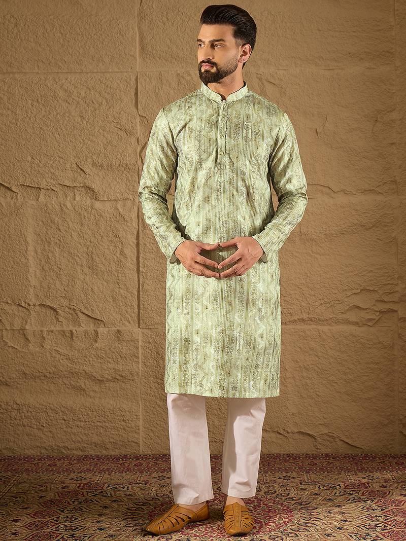 | Product Name | Men Olive Silk Blend Ethnic Motifs Embroidered Straight Kurta | |