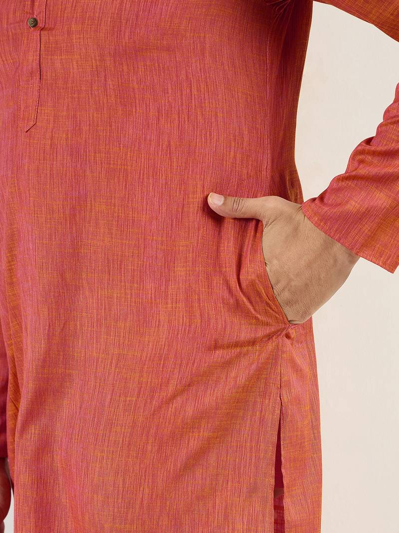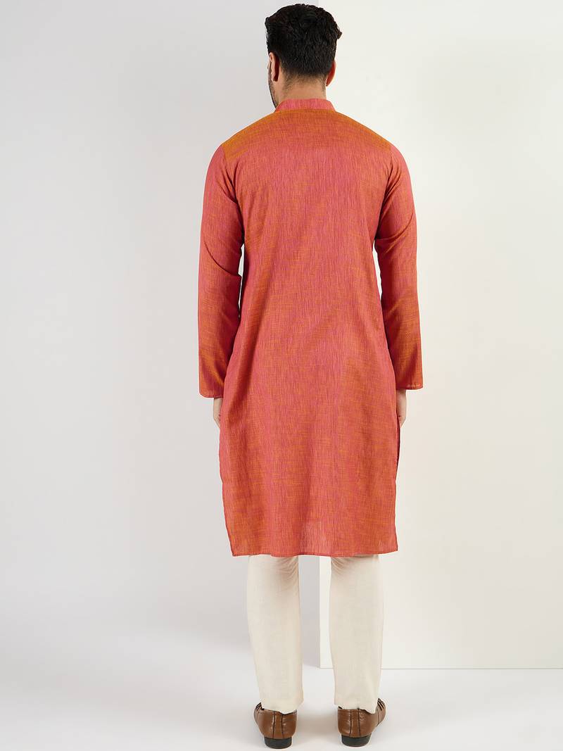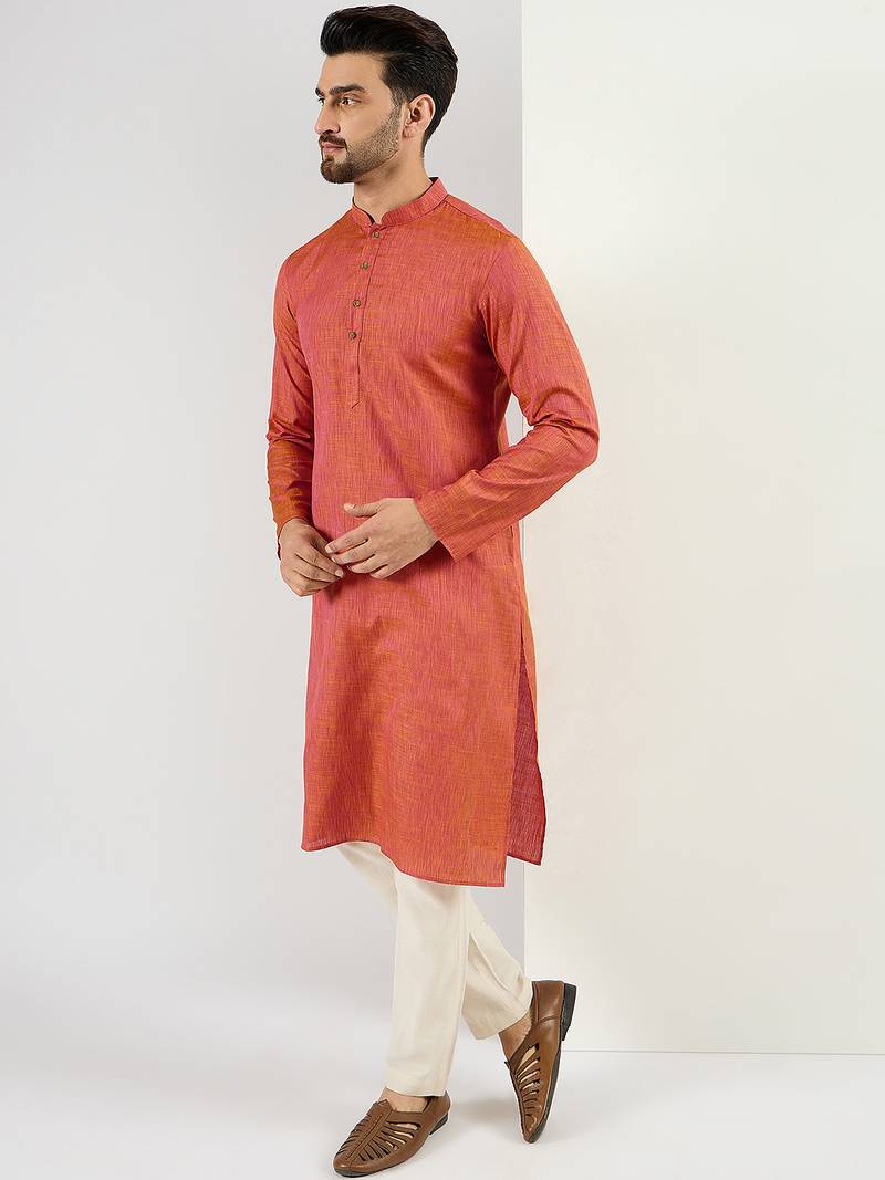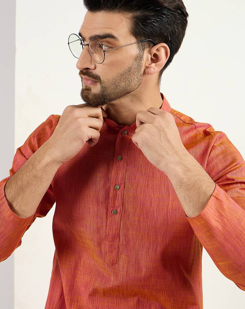 | Product Name | Men Orange Cotton Solid Woven Design Straight Kurta | |