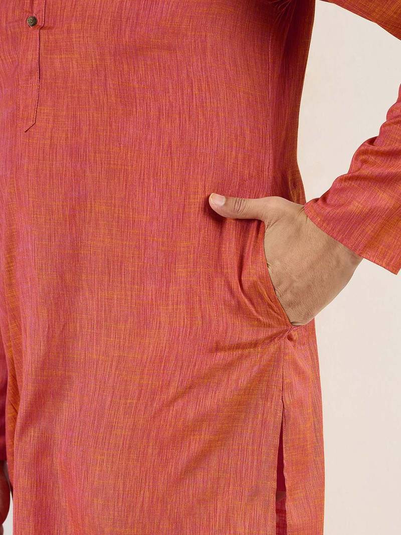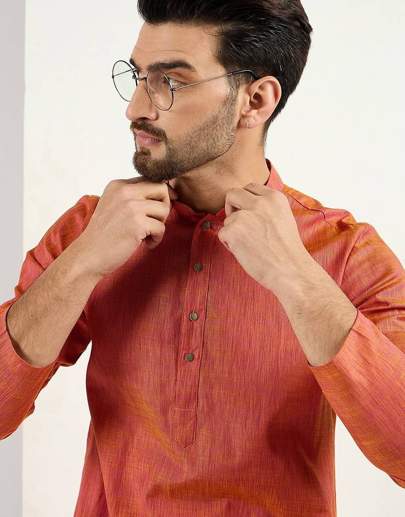| Product Name | Men Orange Cotton Solid Woven Design Straight Kurta With Pant Set | |