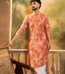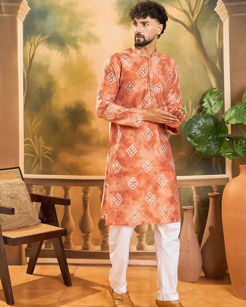 | Product Name | Men Orange Silk Blend Batik Embroidered Straight Kurta | |