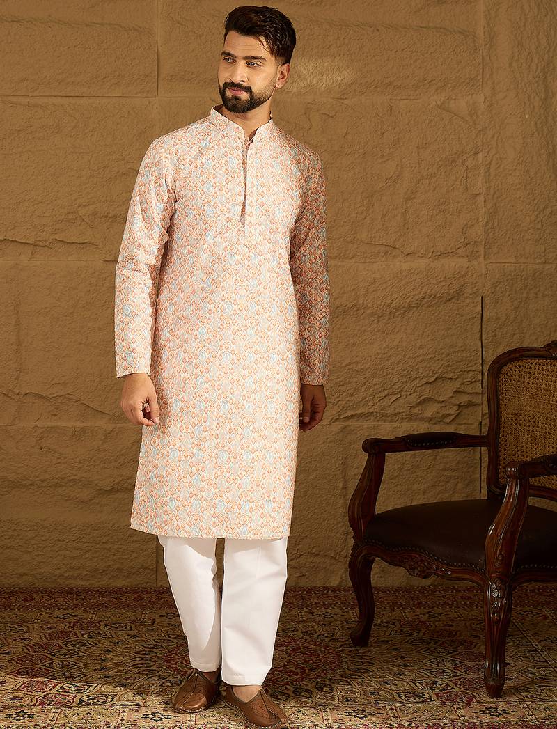 Product Name Men Orange Viscose Rayon Geometric Printed Straight Kurta