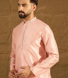 | Product Name | Men Peach Polyester Solid Embroidered Straight Kurta With Trouser | |