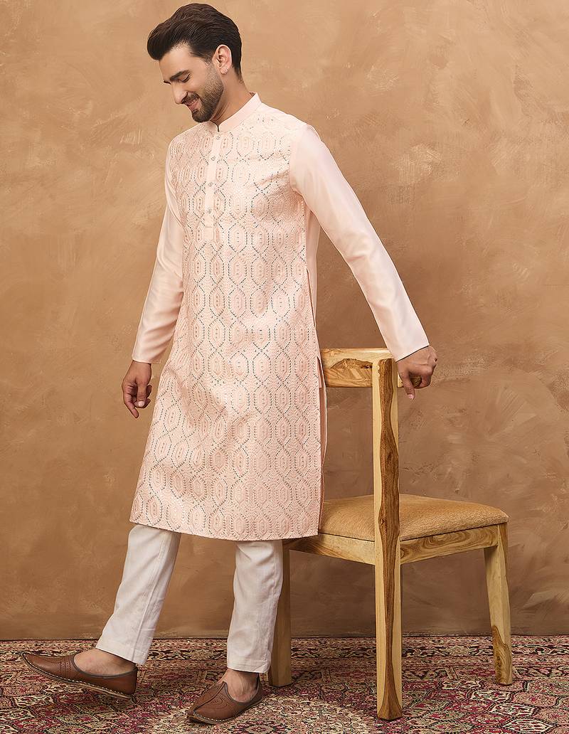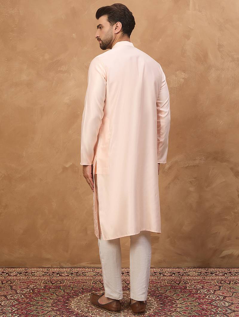 | Product Name | Men Peach Silk Blend Solid Embroidered Straight Kurta | |