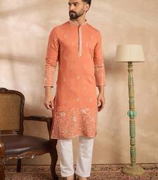 | Product Name | Men Peach Vartican Solid Embroidered Straight Kurta | |