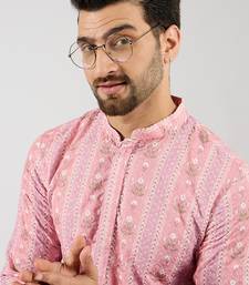 | Product Name | Men Peach Viscose Rayon Floral Embroidered Chikankari Straight Kurta | |