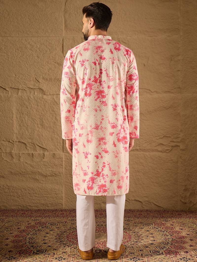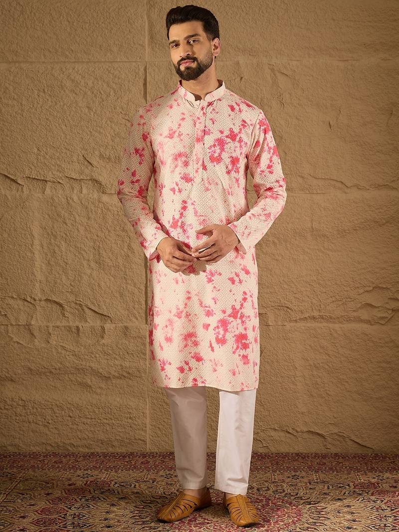 | Product Name | Men Peach Viscose Rayon Shibori Embroidered Straight Kurta | |