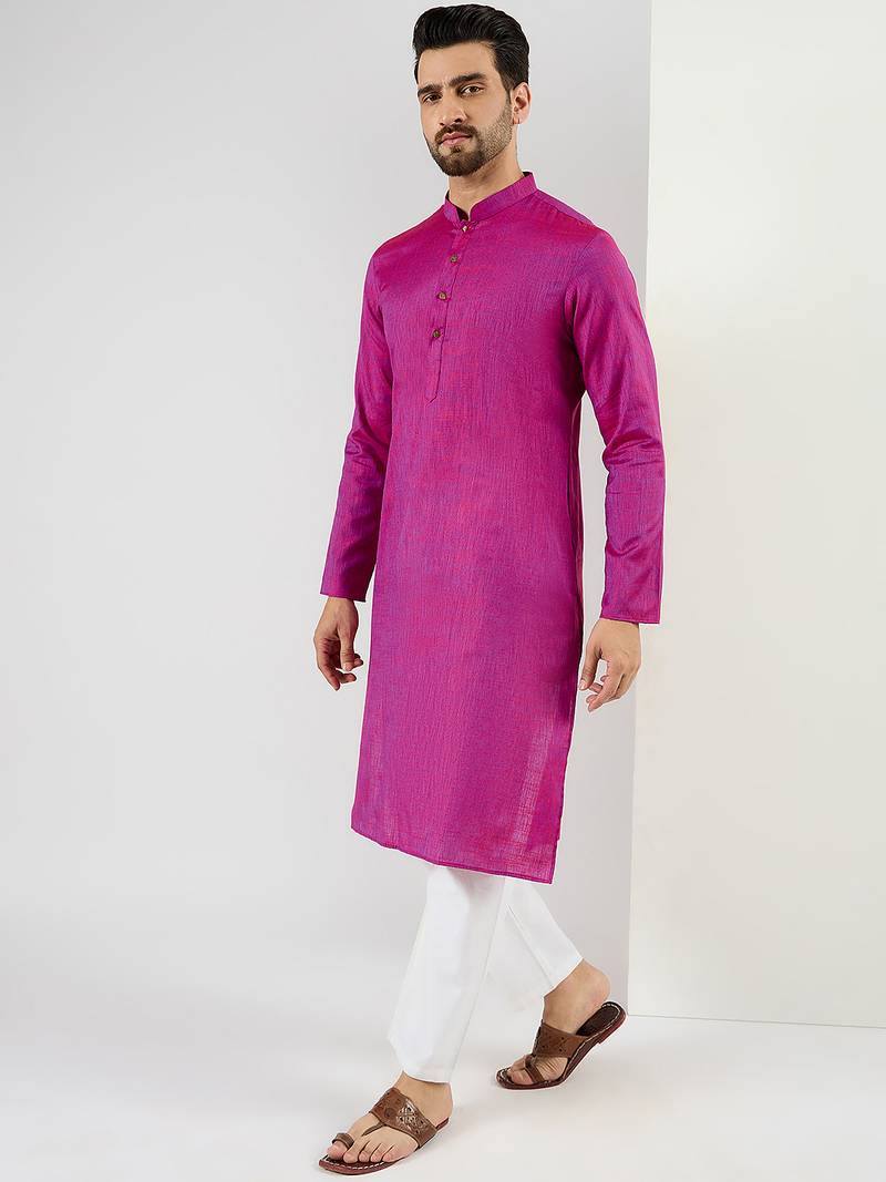 | Product Name | Men Pink Cotton Solid Woven Design Straight Kurta | |