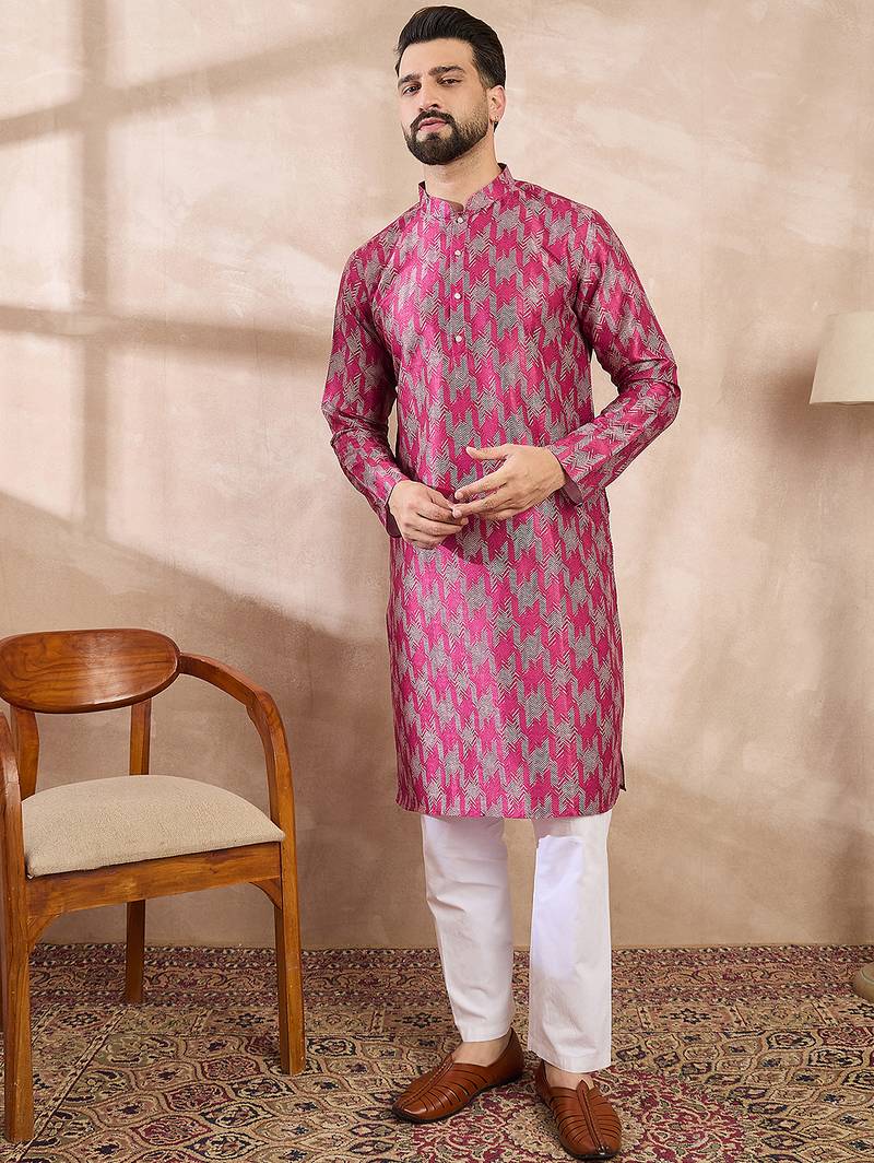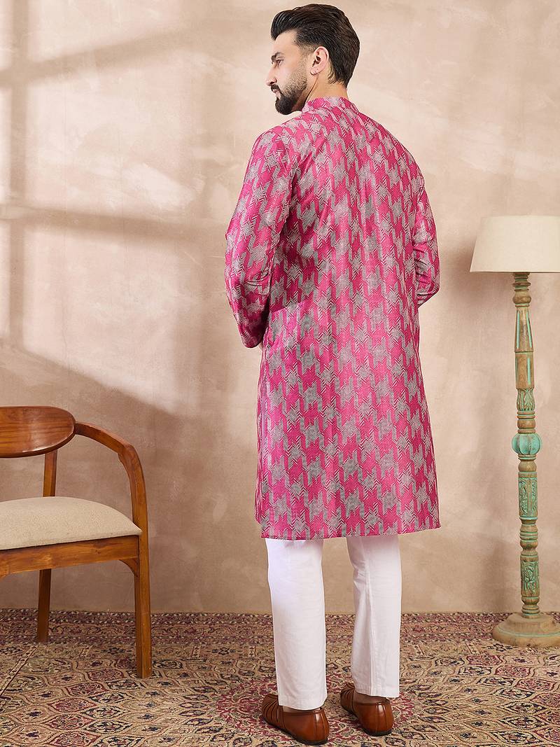 | Product Name | Men Pink Silk Blend Abstract Printed Straight Kurta | |