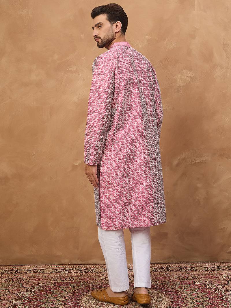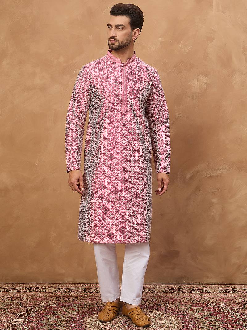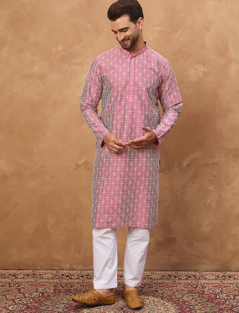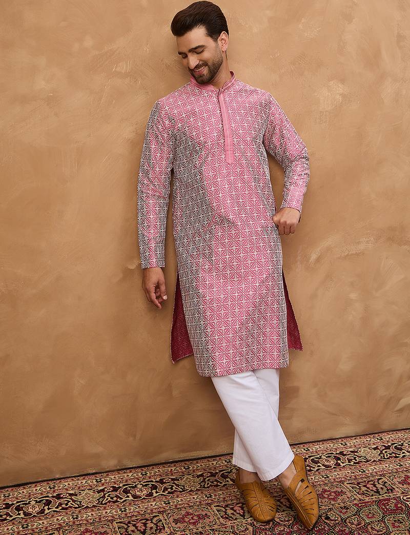 | Product Name | Men Pink Silk Blend Ethnic Motifs Printed Straight Kurta | |